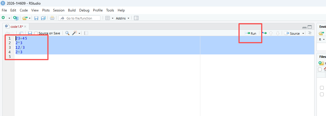 複数行を実行したい場合、領域を指定して(Ctrl-A)、(Run)をクリックしますか、Ctrl-Enterで実行します。