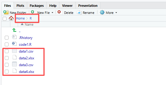 write.xlsx(data, "data4.xlsx", sheet = 1)成功すると、正しいディレクトリにファイルが表示されます。